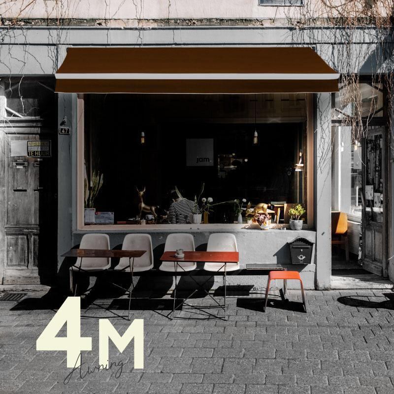 オーニングテント 4M 張出 2.5m 巻き取り式 防水 格納式 手動 白フレーム こげ茶色 ブラウン 日よけ サンシェード
