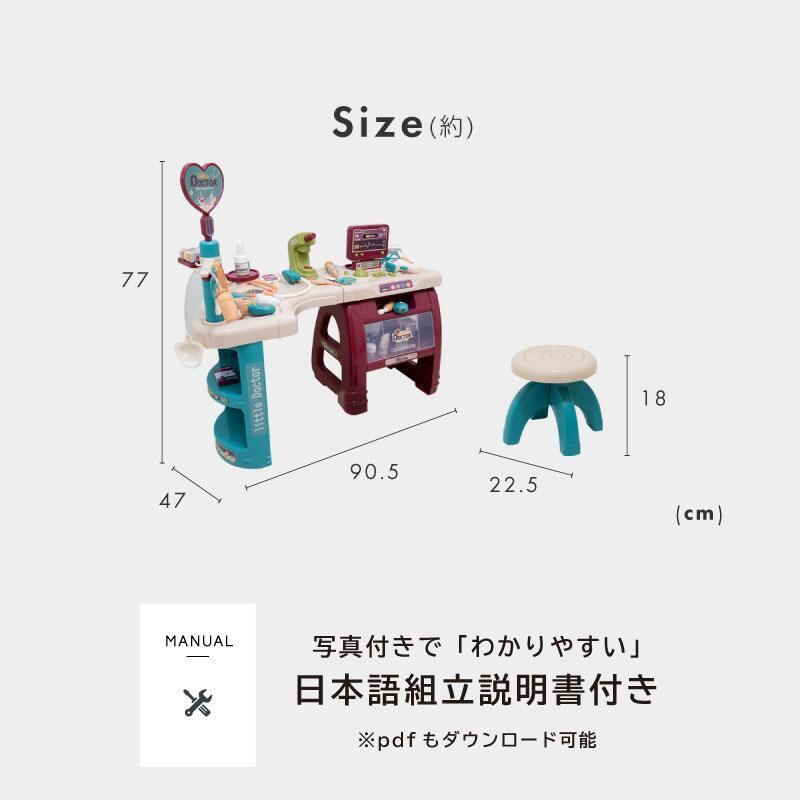 診察台とイス、豊富なアイテムが全部そろったお医者さんごっこセットです。