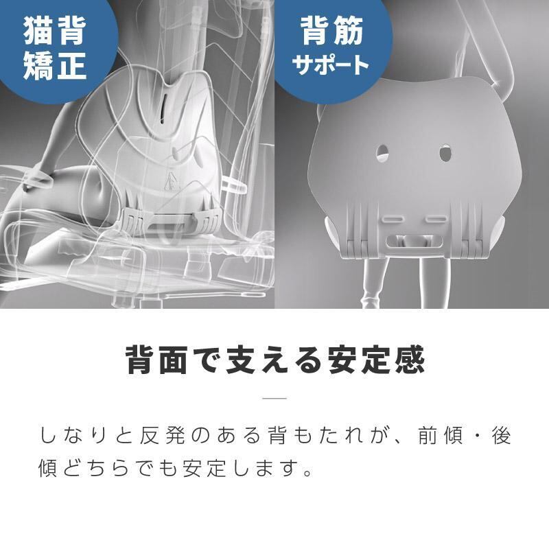 バックサポートクッションで、骨盤を上に引き上げるデザイン。座るだけで骨盤を正しい位置に導きます。