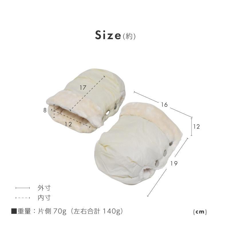 フロントバーにつければベビーのおててもポカポカです。手袋と違い落としてなくす心配もありません。