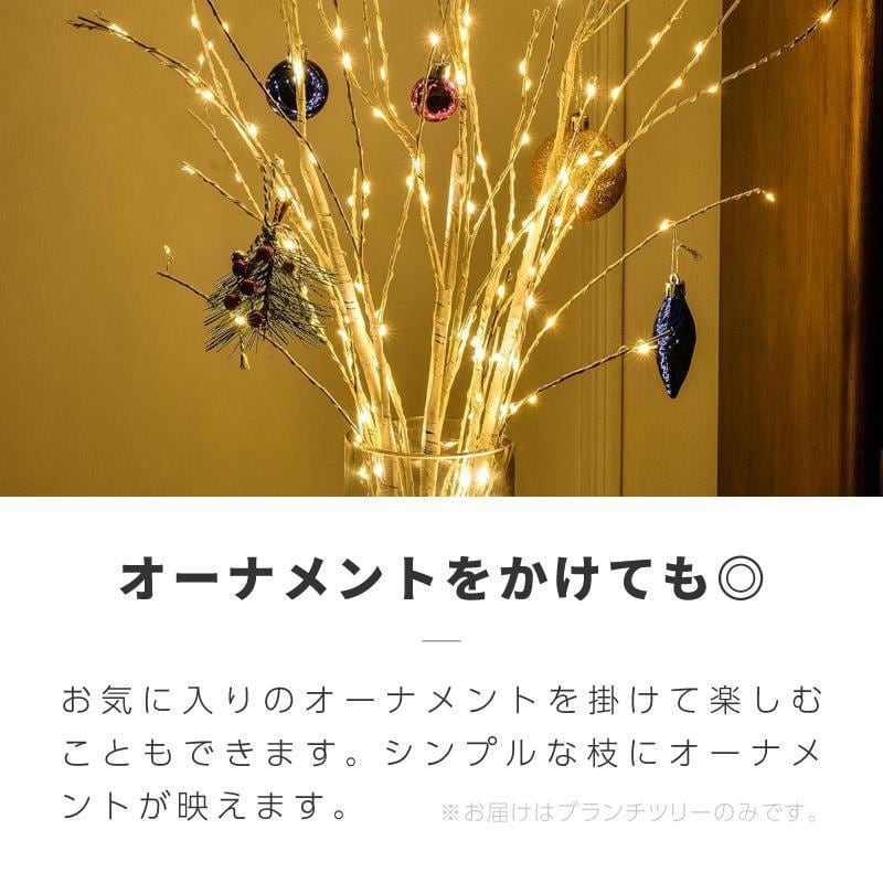 枝のみのシンプル構成で、オーナメントなしでもインテリアに溶け込みます。