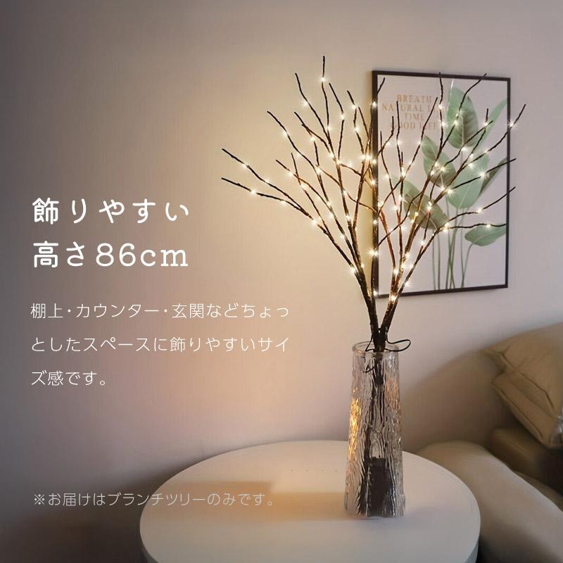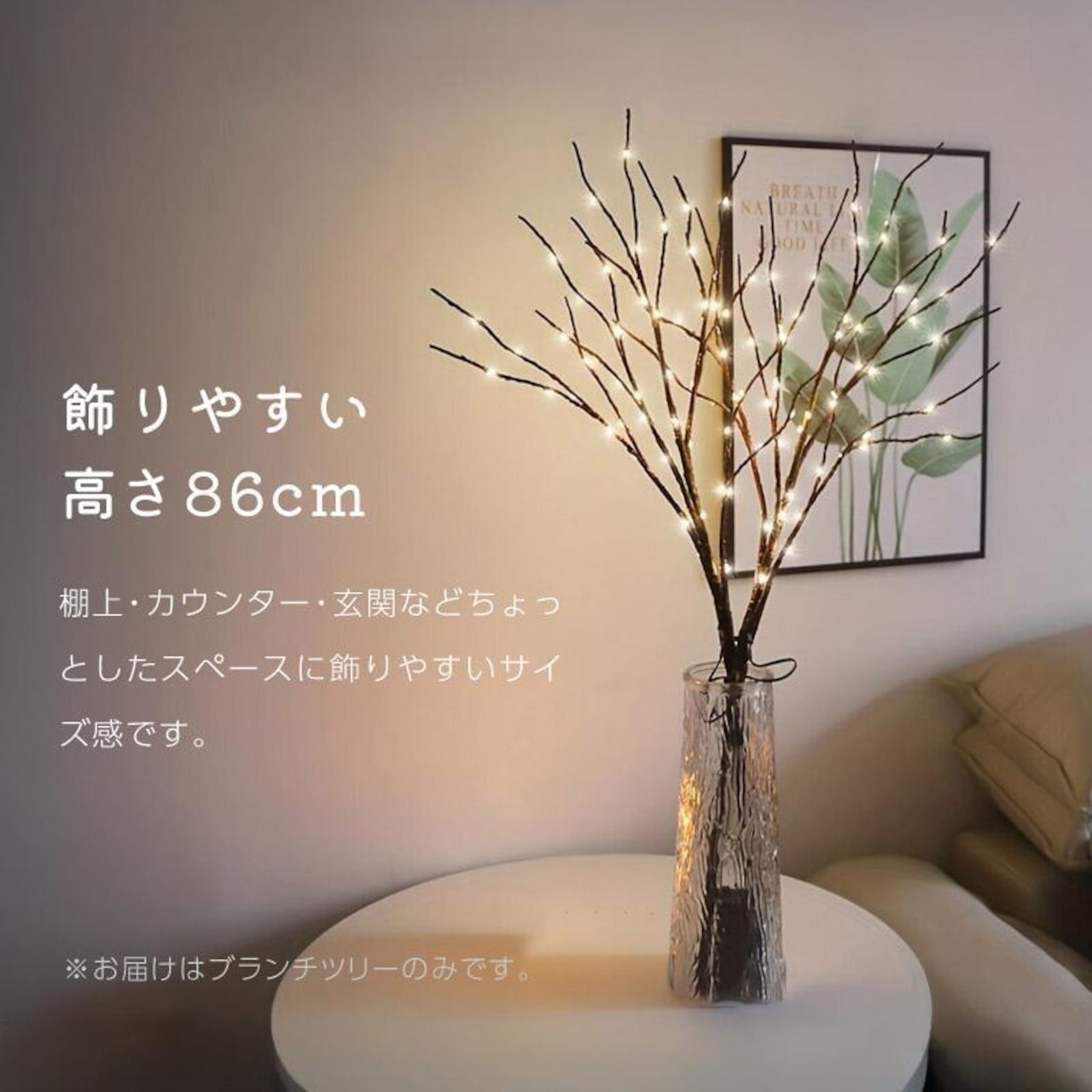 白樺のような枝ツリーが、LEDライトの優しい光で空間を上質に彩ります。